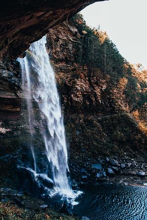 Behind the Kaaterskill Falls in the Catskill Mountains of New York.